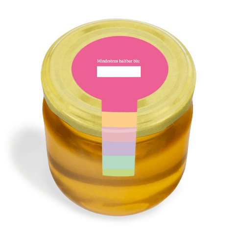 Gläsergrößen können variieren. Bitte prüfe sorgfältig, ob dieses Etikett auf dein Honigglas passt. Lade dafür unseren Größenleitfaden als Druckdatenblatt herunter.